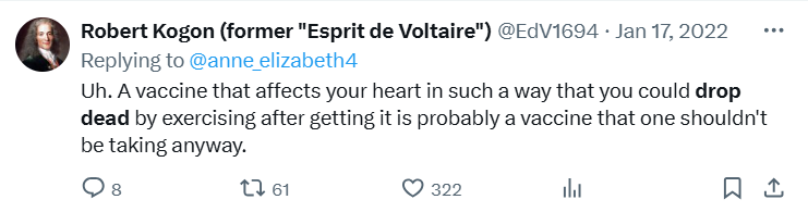 The above immediately started going viral and only stopped because the author of the tweet to which I was replying deleted the tweet. She had said something to the effect that UK authorities should advise people not to exercise for two weeks after getting a COVID-19 vaccine as the highly responsible German authorities did. At the time, I probably only had a couple of dozen followers. It didn’t matter. The platform was not ranking accounts and their replies, deciding who gets promoted and who gets demoted, who gets seen and who does not. It was just first come, first served.